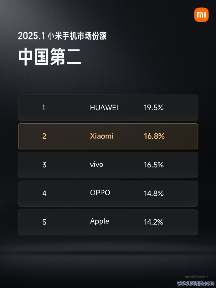 小米手机2025年1月市场份额位居中国第二小米手机2025年1月市场份额位居中国第二