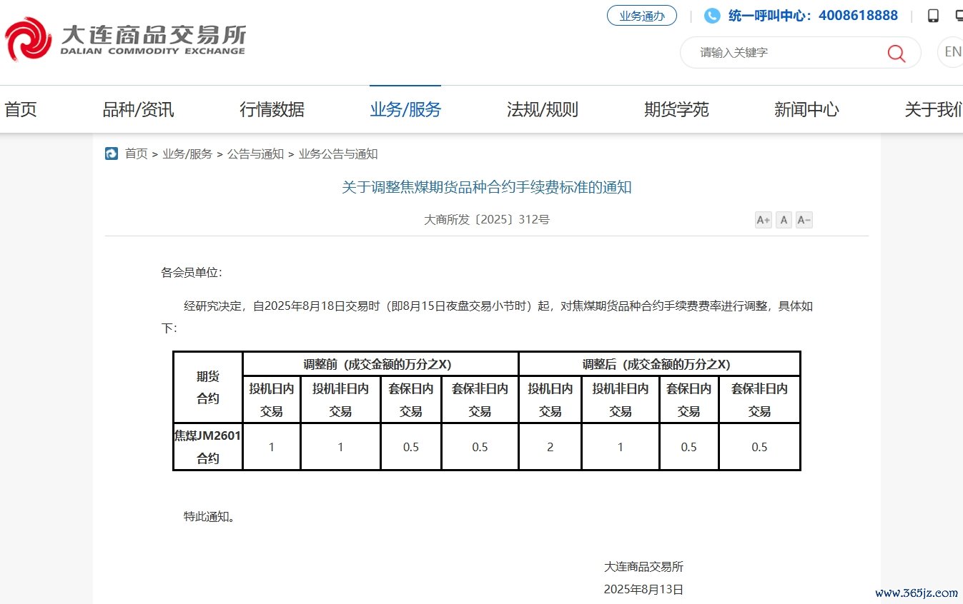 大商所调整焦煤期货品种合约手续费标准大商所调整焦煤期货品种合约手续费标准