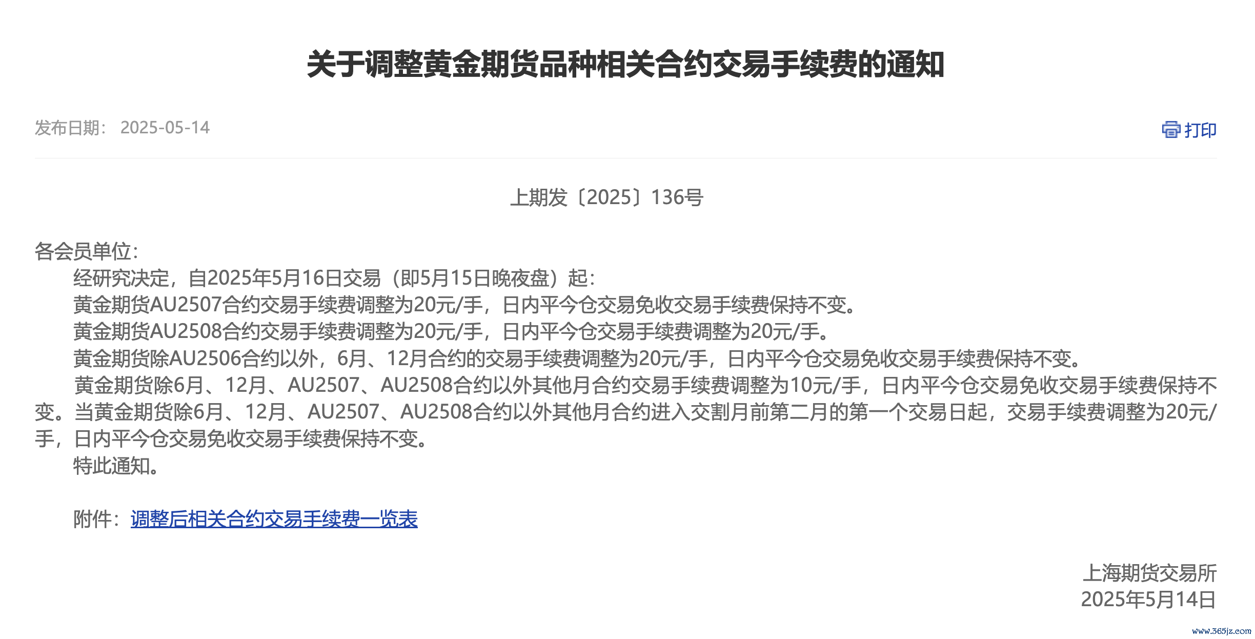 上期所:调整黄金期货品种相关合约交易手续费上期所:调整黄金期货品种相关合约交易手续费